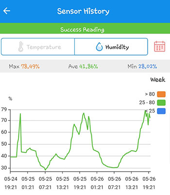 In de grafiek van de luchtvochtigheid zien we dat de Arctic Air bijna geen effect heeft op de luchtvochtigheid wanneer de CMH kweeklamp aan staat. Zodra hij uit gaat schiet de luchtvochtigheid omhoog en dat is precies wat ik wil. Ik ga verder met dit leuke apparaatje.