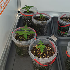 Het wordt steeds drukker in de CNNBS G-Kit XL; het ene na het andere zaadje komt in beweging. De eerste zaadjes van Amsterdam Genetics zijn ook ontkiemd. Ik heb ze deze week overgezet in de tomaten-emmers om ze in voor te groeien. Hieronder zie je de AK Choco Kush zaadjes na vijf dagen ontkiemen, da’s best snel.