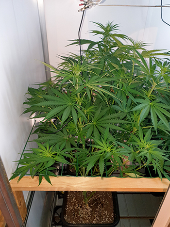 In de eerste week na mijn laatste update waren de Mohammeds in de G-Kit XL hoog genoeg geworden, zodat ik het scrogrek erin kon plaatsen. In de dagen daarna was het zaak om de dames door de gaten heen te helpen. Dit heeft ervoor gezorgd dat de planten de gehele oppervlakte benutten. De laatste week ondervond ik wat problemen met het water geven. De Mohammed wietplanten waren aan de onderzijde van het hekwerk namelijk erg breed geworden. Ik heb het wat druk gehad waardoor ik de dames nu pas een knipbeurt heb gegeven. Daarbij heb ik me even alleen gefocust op de onderzijde van de wietplanten tot aan het hekwerk. Nu kan ik er weer fatsoenlijk bij met mijn maatbeker.