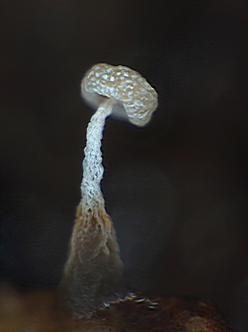 - Een uitgedroogde trichoom? Nee, het is de myxomycete didymium. Foto: Simia Attentive