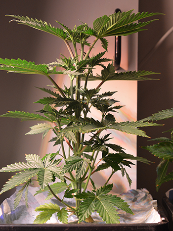In principe was de aarde gister voor de planten nog steeds vochtig genoeg, aangezien de bladeren van de OE Kush planten nog steeds wat naar beneden bogen. Die van de Hollands Hope hebben wel de hele week schuin omhoog gestaan. De twee wietsoorten hebben dus duidelijk andere waterbehoeftes, en laten ook een totaal verschillende groeistructuur zien. De OE Kush planten zijn korte struikjes en de Hollands Hope is al een stuk hoger, ik heb een paar foto’s genomen waarop het verschil goed te zien is.