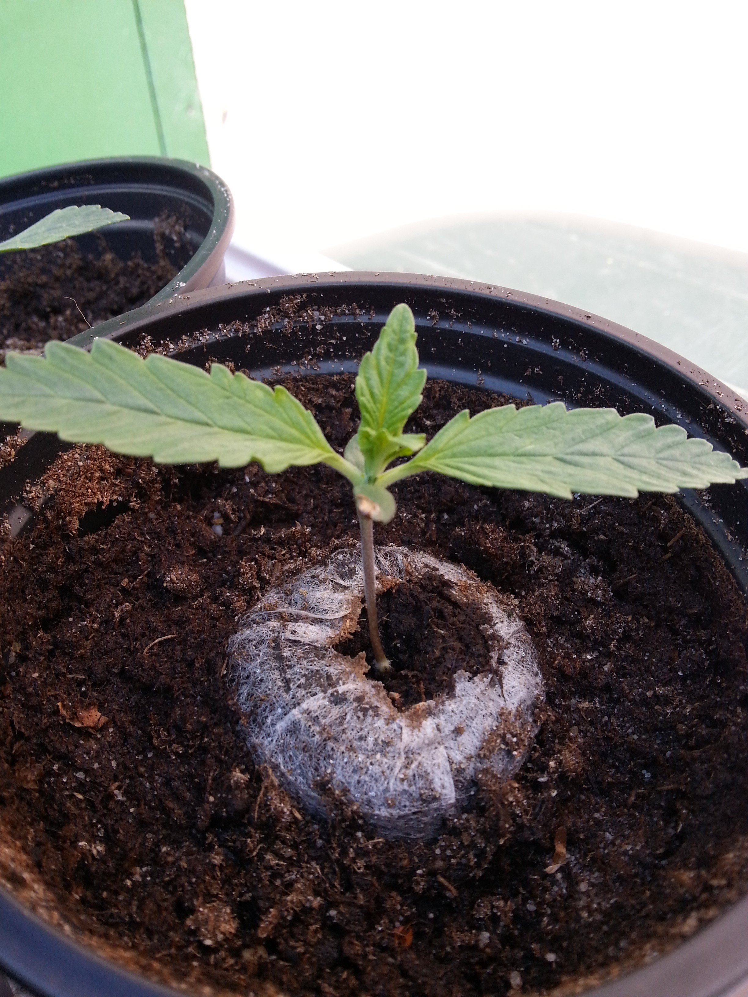 Ik heb een aardemengsel gemaakt van zaai- en stekgrond, waar niet veel voeding in zit (80%), en een klein beetje batmix van Plagron (20%) die wel erg ‘gekruid’ is. Zo hebben ze wat mij betreft meer dan genoeg voeding voorlopig. Als ze naar buiten gaan zal ik ze trouwens nog een keer overpotten naar 3 liter potten, en dan later nog een keer naar potten met een inhoud van 11 liter. Zo krijgen ze een mooi wortelstelsel en voorkom je dat de wortels rondjes gaan draaien in een te kleine pot.