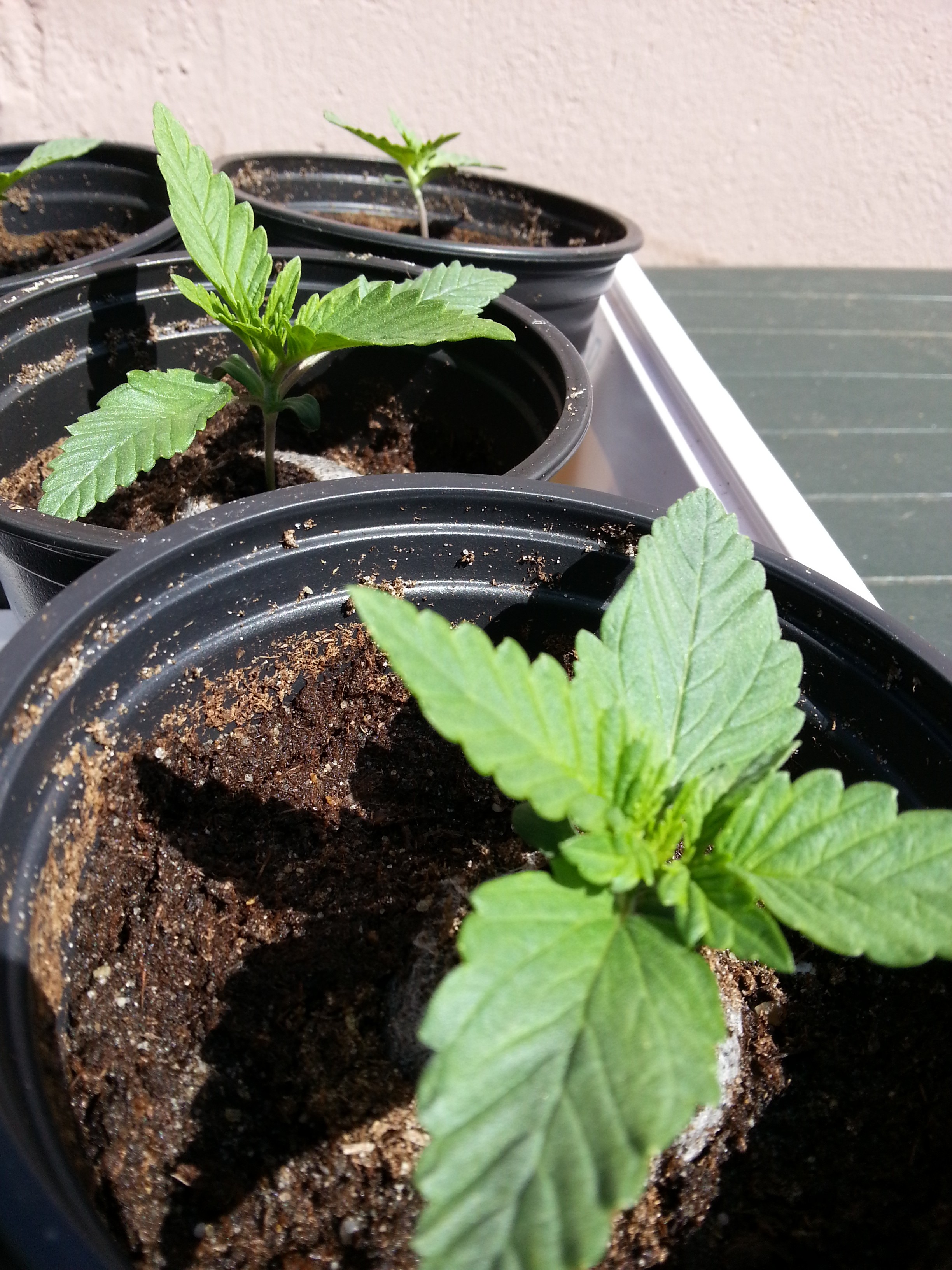 Ik heb de 5 jonge plantjes in het weekend vast lekker in het zonnetje gezet om ze aan de buitenlucht te laten wennen