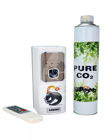 Kweken met CO2 toevoeging alleen voor grote kwekerijen weggelegd? Niet met Airbomz, een kleine elektronische dispenser, aangesloten op een bus pure CO2. Wanneer je lampen aan gaan, schakelt ook de Airbomz unit aan en wordt er CO2 in je kweektent of -kast gespoten.