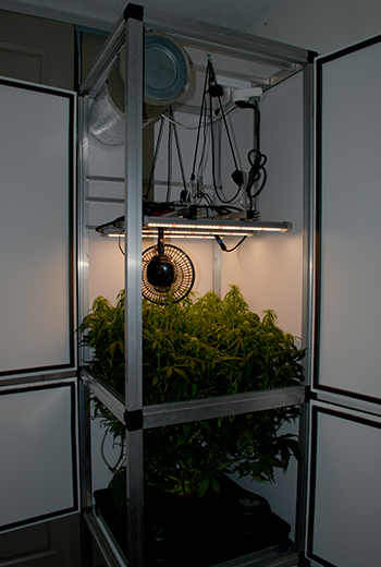 Maar met de G-Bars hoger boven het gebladerte, kwamen de onderste toppen ook weer wat verder van de lamp af. Té ver om genoeg licht op te vangen om tot fatsoenlijke toppen uit te groeien, en bovendien groeien er bovenaan al zoveel toppen, dat er aan de onderkant best wat weg konden. Al die topjes onderaan stagneren de luchtcirculatie alleen maar, en werken een te hoge luchtvochtigheid en daarmee schimmels in de hand.