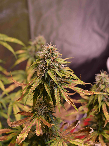 Nou ja, voetjes op de vloer maar weer. Het was een drukke week in de tent en ik blijf gissen naar de oorzaak van het bladprobleem. Maar wat er ook voor zorgt dat de bladeren één voor één verdorren, ze zullen er niet meer van herstellen. De bloeifase is ver gevorderd en er worden geen nieuwe bladeren meer aangemaakt.