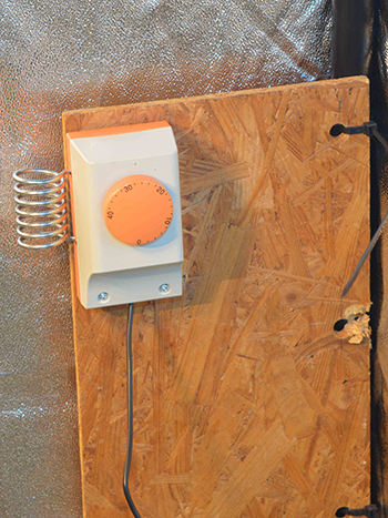 Dan het temperatuur probleem; zoals jullie van vorige week misschien nog weten is de sterk schommelende temperatuur in mijn kweektent. Van een sponsor heb ik daarom een fancontroller gekregen, waar ik heel blij mee ben! Een thermometer met een sensor hangt in de tent en is verbonden met een dimmer/schakelaar op de afzuiger. Aan de hand van een ingestelde maximumtemperatuur, regelt dit systeem nu automatisch de afzuiging.