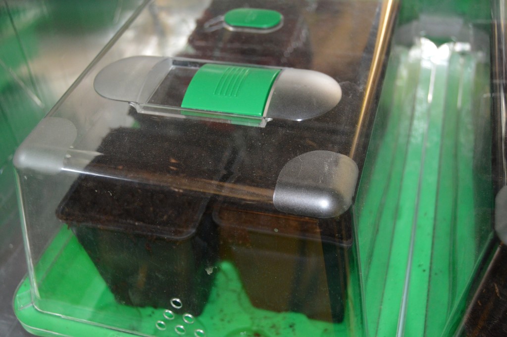 Ook heb ik de potjes in de kweekkast vast klaargezet met potgrond en een beetje water aangelengd met een beetje BioBizz root-juice. Dan hebben de zaadjes een goeie bodem om in te kunnen groeien. Dit is ook een tip voor de winnaars van mijn zaden, je moet wellicht wat meer geduld hebben met het ontkiemen maar dan komt het vast en zeker wel goed.