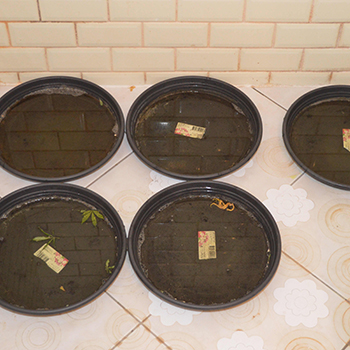 Na de oogst van de CBD Compassion en de CBD Kush planten, heb ik de wortelkluiten in een vuilniszak geleegd en die netjes in de groenbak gedaan. Vervolgens was het tijd om de schotels waar de planten op staan en het uitlek-water opvangen te reinigen. Dit gaat prima met een sopje van warm water en wc-reiniger; daar laat ik de schotels eerst een nacht in weken en dan maak ik ze schoon met een schuurspons. Op dezelfde manier heb ik de potten schoongemaakt.