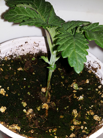 Ongeveer 1,5 week na het verpotten zijn de dames flink gegroeid. En dus ben ik begonnen met snoeien door de dames te toppen. Een wietplant groeit van nature graag in de vorm van een kerstboom, met 1 grote hoofdtop. Om het schwazzen zo goed mogelijk uit te laten pakken, haal ik de top er af op de 5e node.