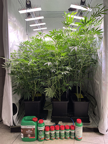 Het 100 liter Flexi Tank reservoir van mijn Autopot bewatering-systeem vul ik een keer in de week met water en plantenvoeding van Bio Nova. Dat is voldoende om mijn tent een hele week te verzorgen. De voeding geef ik volgens het ‘Soil Cultivation’ schema zoals dat op de Bio Nova website te vinden is.
