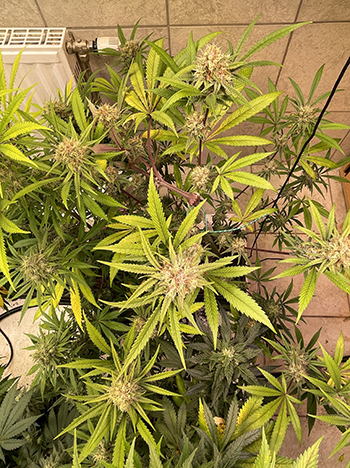 De meeste stampers (bloeiharen, of pistils in het Engels) op de toppen zijn nog steeds wit. Dat wil zeggen dat de bloei nog steeds in volle gang is, en de planten nog niet zijn begonnen met rijpen. Als de witte stampers indrogen en bruin worden, dan weet je dat de plant rijp wordt, en de oogst in zicht komt.