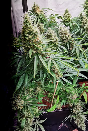 De oogst is niet zo zwaar als mijn record met de SANlights maar nog steeds meer dan ik vroeger onder HPS kweekte. Aan het einde van de rit heb ik 1209 gram aan gedroogde toppen overgehouden als mijn medicijn; de rest moest ik weghalen vanwege de toprot. Die uitkomst stelt me zeer tevreden omdat ik nu weer voldoende medicijn heb tot mijn volgende oogst klaar is. 👍😎