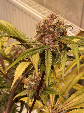 De hoofdtoppen van Mr. Big Candy van Mr. Hide Seeds en van de Sugar Black Rose van Delicious Seeds laten een paarse verkleuring zien onder een extreem dikke laag kristallen, en ruiken heel erg zoet en fruitig. En ook de Strawberry-Sour-Diesel van DevilHarvestOriginal Seeds heeft een mooie rode kleur gekregen. De stam is helemaal bloedrood en de toppen zien uit alsof ze gloeien!