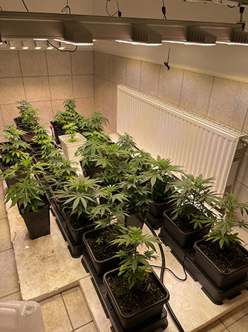 De BioTabs voedingstabletten doen nog steeds goed hun werk, dat zie je aan de mooie groene kleur van de planten. De tabletten zijn voldoende voor de hele cyclus, zodat ik verder alleen nog water aan mijn ’trichome wonders’ hoef te geven. Een keer in de week vul ik hiervoor mijn 250 liter Flexitank-reservoir, dat voor de bewatering van het Autopot-systeem zorgt. De planten die niet in het systeem staan maar in gewone potten, geef ik handmatig water met een gieter. Ik gebruik het water direct uit de kraan en hoef de pH-waarde niet te corrigeren omdat de BioTabs voeding zelfregulerend is. Dat spaart een heleboel tijd bij het wateren en maakt alles veel makkelijker.
