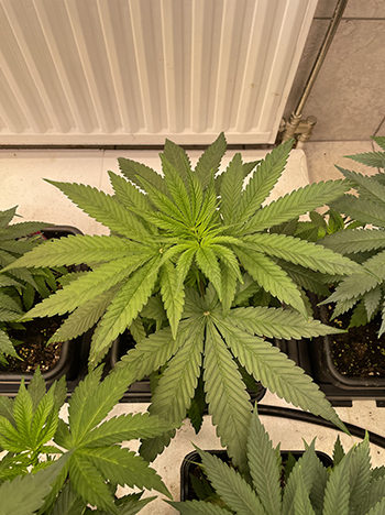 Sinds het verpotten van mijn ’trichome wonders’ groeien ze mooi verder. De meeste planten hebben het goed doorstaan zonder al te veel stress, en zijn van top tot teen mooi groen. Sommige planten hebben echter wat schade aan de wortels overgehouden en hebben nu gele schutbladeren op de lage takken. Dat is niet ernstig en kan soms gebeuren. Wat belangrijk is, is dat de nieuwe groei bovenin de plant mooi groen is. De gele bladeren kun je van de plant afhalen. Hierin vindt toch geen fotosynthese meer plaats, dus deze bladeren ondersteunen de groei van de plant niet meer.