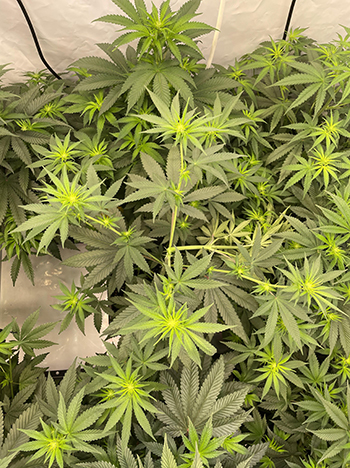 M’n kweektent begint wel behoorlijk dicht te groeien, en daarom is het de volgende keer tijd om de planten een beetje te ontbladeren. In het Engels noem je dit defoliation maar je kunt niet zomaar wat bladeren eraf knippen. Hoe het wel moet zal ik je over twee weken uitleggen. Tot dan!