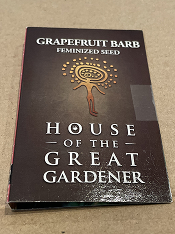 Van mijn Canadese vrienden van House of the Great Gardener heb ik de soort Grapefruit Barb gekozen. Deze kruising komt van hun prijswinnende soort Barbara Bud en de klassieke strain Grapefruit, en is geweldig! Ze ruikt heel erg naar citroen of limoen en zit supervol met trichomen. Ik kan niet wachten om deze groeien en in volle bloei te zien!