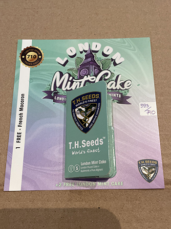 T.H. Seeds heeft van deze strains maar 710 pakjes op de markt gebracht en iedere pakje heeft een eigen serienummer. Zo heb ik pakje 593 van de 710 van de London Mint Cake, wat een kruising is tussen de soorten London Pound Cake en Kush Mints. Van de Wy-Kiki heb ik pakje nummer 581 gekregen, en dat is een kruising tussen Pink Panties en Banana Candy Crush. Het klinkt me nu al héérlijk in de oren, en ik kan eigenlijk niet wachten tot de kweek voorbij is om ze te proeven!