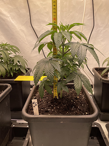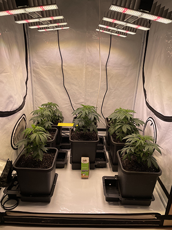 Mijn twee LED-lampen zijn in week 5 gedimd op 80% en hangen 75 cm boven van de toppen van de planten. Door het licht te dimmen krijgen de planten een mooie strekking in deze fase, en blijven ze niet te klein. Dat verbetert de oogst aan het einde aanzienlijk!