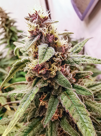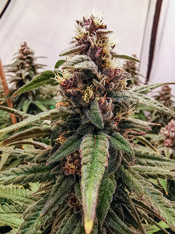 De groei van de planten was fantastisch en de bloei is supersnel begonnen. Nu, in week 12 (zie de foto’s en video) heb ik al dikke cola’s in mijn tent, en kan je duidelijk de mooie paarse kleur van de buds herkennen. Alle planten hebben en dikke laag trichomen en ruiken verrukkelijk! De geur is zoet, bijna als een mix van banaan en kaneel, maar met nog een gassy en Diesel achtig aroma van de OG Kush erdoorheen. Het is een genot voor de neus.