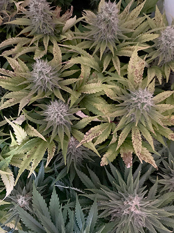 Hou het qua voeding even bij een lichte dosis en gebruik alleen de basis bloeivoeding, zonder PK-booster. Zorg voor een goede luchtcirculatie en heb geduld. Wat je nu verandert, zie je pas later terug aan de planten. Bladeren die al vergeeld zijn en roestplekken hebben, zullen niet meer groen worden. Alle aangetaste plekken en bladeren kun je dus sowieso wel afknippen.