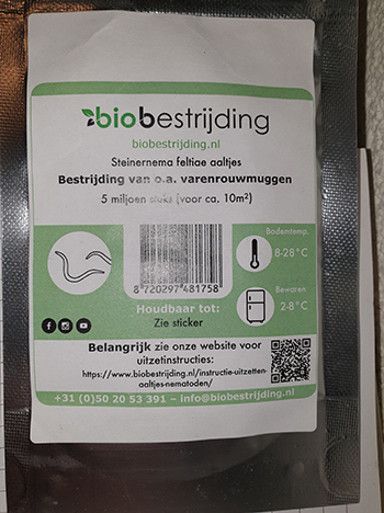 De kleine vliegjes hebben ook een naam; als ik het goed heb zijn het varenrouwmuggen. Ze vormen geen groot gevaar voor een wietplant maar ik heb ze toch liever niet. Ze gaan waarschijnlijk ook knetteren tijdens het roken en daar zit ik natuurlijk niet op te wachten. Om de varenrouwmuggen te bestrijden ben ik met Steinernema feltiae aaltjes aan de slag gegaan. Deze heb ik volgens de gebruiksaanwijzing over de planten verdeeld, dus het is nu een kwestie van afwachten wat het resultaat gaat worden. Ik heb voor de zekerheid ook meteen roofmijten besteld, in de hoop het proces wat te versnellen.