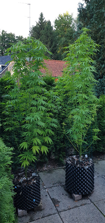 Hallo mensen, en welkom bij mijn vierde buitenkweekverslag; het vorige verslag vind je hier. In dat verslag heb je onder meer gelezen dat ik mijn twee Sensi Skunk Autoflowers heb geoogst en liet drogen. Ter vervanging heb ik 2 Royal Queen Sweet Skunk dames neergezet. De fotoperiode planten doen het goed en zijn door de kooi(en) eromheen goed beschermd tegen de najaarswind. Wel was er een klein bladprobleem bij sommige planten, maar dit is inmiddels zo goed als verholpen.