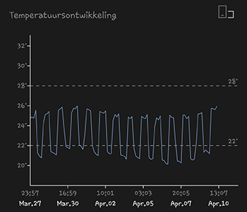 De gemiddelde temperatuur was de afgelopen 14 dagen 23,80 graden Celsius. De gemiddelde luchtvochtigheid was de afgelopen twee weken 45,85 procent. Met de temperatuur en de luchtvochtigheid zit het helemaal top op het moment.
