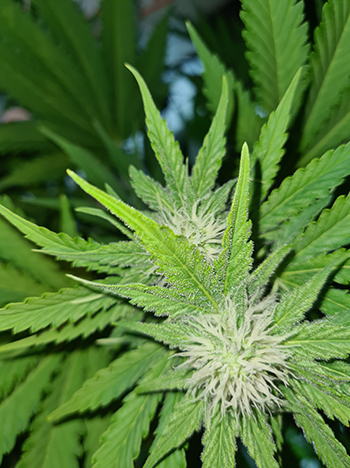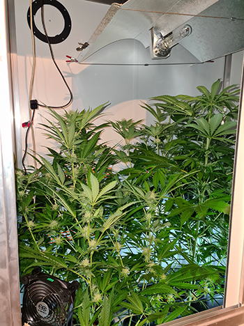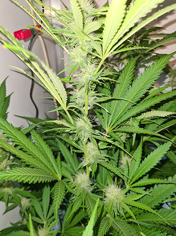 De dames bedekken de totale oppervlakte in de kweekkast (1m2) en zitten vol met kleine topjes. De Mohammeds maken deze ronde ook veel grotere bladeren aan dan de vorige keer. Ik heb tot nu toe ook maar één plant hoeven toppen; de anderen heb ik gewoon hun natuurlijke gang laten gaan. Onder het bladerdek groeien de toppen dicht tegen de stam aan, en ik heb het gevoel dat dit een goede kweekronde gaat worden. Nu vraag je vast af waarom ik dat denk? Nou, deze kweekronde loopt aardig soepel tot nu toe. Laat ik het maar niet te hard zeggen, maar het is wel zo 😊