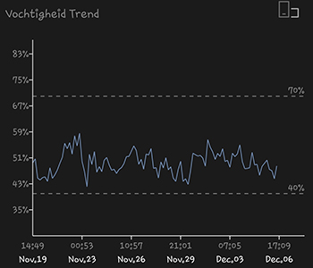 De gemiddelde temperatuur van afgelopen week was hier 23,75 graden Celsius. De gemiddelde luchtvochtigheid was 72,34 procent: top voor stekjes! Ik heb het lichtschema hier ook aangepast van 19/5 naar het normale 18/6 (18 uur licht en 6 uur donker). Nu de bloei gestopt is mogen ze een extra uurtje uitslapen en gaan wennen aan het normale groei-lichtschema.