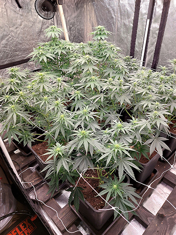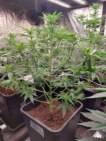 Als de potten licht genoeg wegen, dan krijgen de planten op dit moment de volgende voeding. BAC Silica Power, Plagron Green Sensation, Green House Feeding Hybrids, Green House Feeding Booster (in heel lage dosering), Bio Nova Algae Mix en Bio Nova Vitasol. Afhankelijk van mijn routine en tijd om aan de dames te besteden, geef ik ze 250 tot 500 milliliter per dag, of soms een liter per twee dagen.