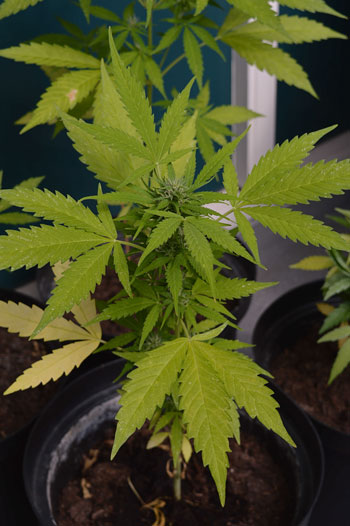 Ik heb ze tijdens de hittegolf goed vochtig gehouden maar toch zijn er hier en daar wat bladeren vergeeld. Ik geef ze daarnaast een heel klein beetje Mills voeding. Ik doe voorzichtig aan omdat dit de eerste keer is dat ik buiten wiet kweek. Ze zijn al druk bezig met het maken van toppen. De ene heeft meer top dan de andere maar ze gaan allemaal de goede kant op. Ik zal ze van de week wat Ultimate PK van Mills geven zodat de toppen kunnen aanzwellen.