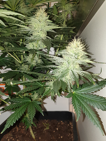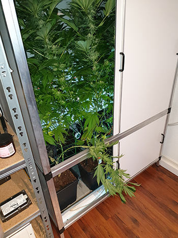 De drie Sneezes staan zich héérlijk te vermaken in de CNNBS G-Kit met verhogingsset. De dames zijn zelfs nog wat de hoogte in gegaan deze week. De Sneezes zijn ook duidelijk meer geur gaan produceren. Dit is natuurlijk super, maar ik moet daardoor wel eerst de ventilator uitzetten voor ik de kweekkast open. Dit was ik van de week vergeten. En aangezien deze kweekkast in de kamer met schone was staat, vond de vrouw des huizes dit niet zo fijn. Gelukkig was de lucht zo weer weggefilterd maar toch een puntje om op te letten.
