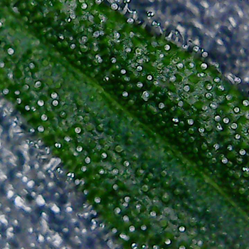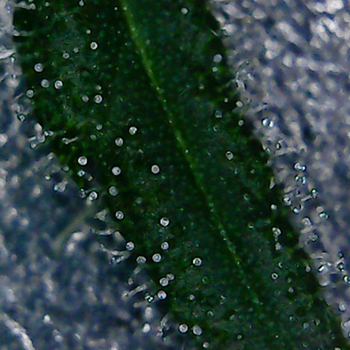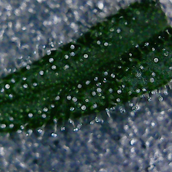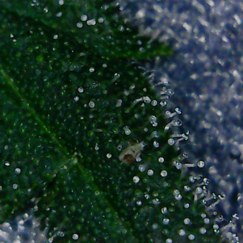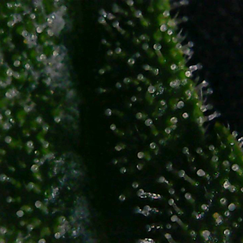 Ook de trichomen van de Sneeze planten zijn goed aan het ontwikkelen. Ik heb zelfs op de eerste foto al een paar gekleurde harsbolletjes gespot. Dit is nog wel erg vroeg in de bloei dus ik zal maar even goed in de gaten houden of ze niet te snel gaat rijpen …ook al weet ik nog niet wat daar tegen te doen is en of dat te snel rijpen überhaupt kan?