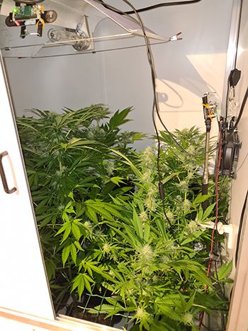 De bewatering van de dames loopt inmiddels weer stabiel. Het gebruik van de Chilipulvers is hier bij een echte uitkomst. Ik controleer de dames tegenwoordig twee keer per dag, waarvan één keer in de ochtend wanneer de verlichting net uit is gegaan. Dan neem ik even een kijkje onderin de kast of er al Chilipulvers aan het knipperen zijn. De Chilipulvers die aan het knipperen zijn geef ik dan in de avond 100 milliliter extra en dat wisselt in de loop van de week, van plant tot plant. De dames krijgen op het moment 700 milliliter water met voeging van Plagron.