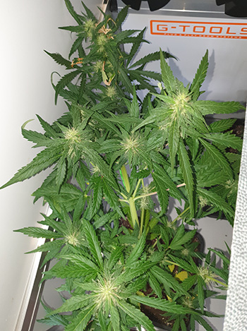 Het was een heerlijke week om eens lekker te klussen, en dat heeft Willie dan ook gedaan. Om zijn Solar Space Bucket (micro-kweekruimte in een oude regenton) milieuvriendelijk te maken, sloot hij hem aan op twee zonnepanelen en een accu. De Critical Orange Punch en Frisian Ducks bloeien ondertussen netjes door.