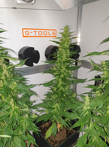Het schiet alweer op met deze ronde. Inmiddels mag ik de zevende kweekweek en de vierde week van de bloei tellen. Het liep deze week op rolletjes. Met de planten althans, op softwaregebied zat het niet zo mee. De temperatuur en luchtvochtigheid datalogger had besloten zich te resetten na een batterijwissel. Hierdoor heb ik geen gegevens van het klimaat deze week. Wat ik wél heb is een update over de Solar Space Bucket maar dat komt straks. Nu eerst eens een kijkje nemen in de CNNBS G-Kit XL 315 Watt CHM.