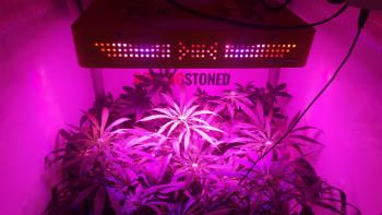 De Spectrabox is een iets krachtiger LED kweeklamp dan de Franse MRIII kweeklamp die eerst in de RollingStoned kast hing, hij is namelijk voorzien van 180 Watt aan LED kweeklicht in plaats van de 144 Watt van de MRIII. Het scheelt niet heel veel maar in de kweekkast merk je daardoor wel meteen dat de nieuwe led wat dieper in het gewas straalt. Ik ben benieuwd wat dat voor de toppen gaat doen.