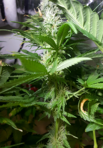 Sinds ik het spul voor het eerst gegeven heb, zijn er gelukkig geen verbleekte plekken meer bijgekomen dus het goedje lijkt zijn vruchten af te werpen. Zelfs de toppen die het allerdichtst op de lampen groeien zijn nu nog groen. Gelukkig maar, want witte toppen zien er dan misschien wel mooi uit – erg stoned wordt je er schijnbaar niet van. Van wat ik begrepen heb, wordt er namelijk geen THC in de trichomen op zo’n verbleekte top aangemaakt.