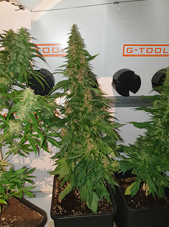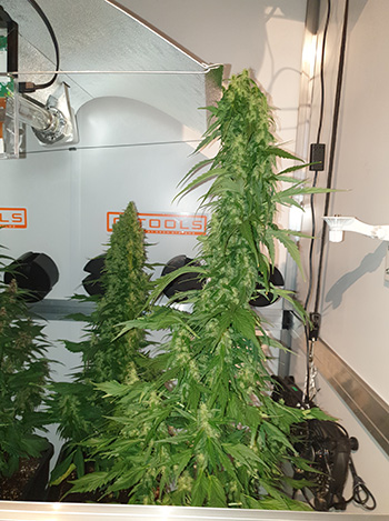 Het is de zesde week van de bloeifase en de negende week van deze kweekronde. De dames beginnen nu wel een beetje te ruiken als je de kweekkast even open doet.