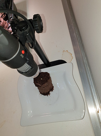 Ik heb inmiddels wel een nieuw SD-kaartje voor de camera binnen. Tijdens het installeren van de software kreeg ik een idee. Zou het niet eens leuk zijn om het ontkiemen van een Mohammed wietzaadje onder een microscoop in een time lapse video te bekijken. Ja, dat lijkt me wel wat en ben aan de slag gegaan. Ik heb alles aangesloten en het werkt. Nu is het afwachten of er wat te zien is volgende week. Wordt vervolgd!