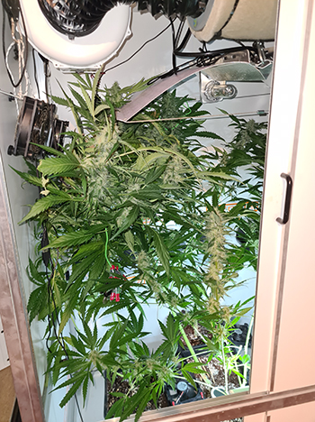 Zeven weken geleden zette ik de Mohammed wietplanten van deze ronde op 12/12, en dat zie je! De hele kweekkast zit vol met zoet ruikende, plakkerige toppen. Het binddraad dat ik had gebruikt om de takken omlaag te houden is niet meer nodig. Nu de toppen zwaar zijn moeten ze eerder omhóóg gehouden worden. Ze zijn deze week weer goed in gewicht toegenomen, waardoor ook veel taken tegen de wand hangen. Met nog ongeveer een week of twee te gaan, loopt de spanning op… Kom, laten we een kijkje nemen in de G-Kit XL.