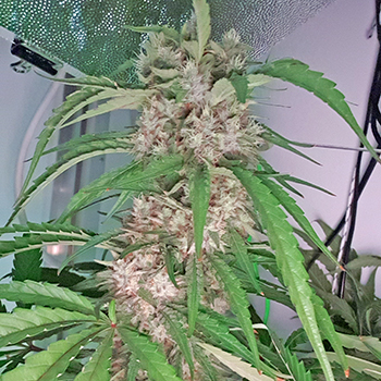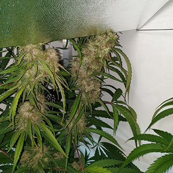 Bloeiweek #6 zit erop dus de Liberty Haze dames gaan hun zevende week in. Ze vermaken zich goed in de CNNBS G-Kit XL. De ontwikkeling aan de hoofdtoppen neemt langzaam af en lijkt zich naar de onderste delen van de plant te verplaatsen. De topjes hier zitten nu ook vol met trichomen.