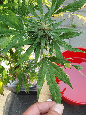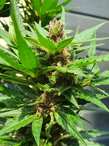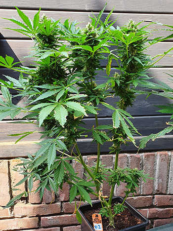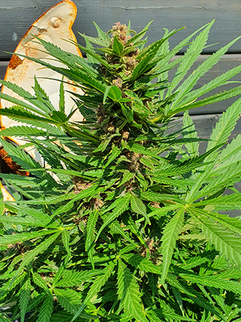 De laatste autoflower met een afwijkende eigenschap is Autoflower #5. Afgaande op de foto’s denk je wellicht dat deze wietplant de dikste hoofdtop had, maar dat is een beetje verneukeratief bij deze plant. De top heeft namelijk precies het tegenovergestelde van die van Autoflower #2: een slechte blad/bud verhouding. Er groeien enorm veel bladeren tussen de toppen waardoor die heel dik lijken. Gelukkig bevatten de bladeren ook veel trichomen, wat het wellicht een goede soort maakt om wietolie van te maken.