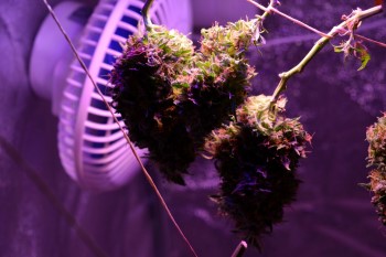 Op 7 december was alle Silver Star Haze genoeg gedroogd om in potten te stoppen en te laten curen. Maar natuurlijk heb ik eerst nog wat foto’s genomen van de oogst. De kleine topjes hield ik apart in een droognet. Nu voor de conclusie, ik moet zeggen dat ik ontzettend onder de indruk ben van de CrazyLED’s, aan iedere tak aan mijn plant zat een grote dikke top. Ik heb bijna 2 gram per Watt geoogst en dat is een prestatie die ik niet eerder haalde. Of de lampen daarmee samen een 600 Watt lamp hebben vervangen, dat weet ik niet. In theorie zou je met deze lampen dus 600 gram moeten kunnen oogsten, maar daarvoor zul je denk ik wel in een sea of green opstelling moeten werken en dat was deze kweekronde niet het geval, ik had immers maar 1 plant en die was niet heel goed gescrogd toen ik haar op 17 september naar binnen haalde.