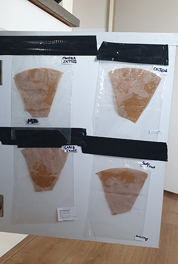 Ik ben begonnen met ontkiemen van de zeven zaden op 9 april. Mijn ontkiem-methode is er slechts één van velen, echter deze is bij mij altijd erg succesvol. Namelijk de koffiefilter methode. Deze werkt als volgt: je neemt een ongebleekt (bruin) koffiefilter, maakt deze vochtig en stopt het zaadje erin, met de spitse kant naar beneden (en dus de bollere kant waarmee ze aan de (moeder)plant vast zat naar boven). Nu zit het zaadje tussen de beide lagen van het koffiefilter. Vervolgens stop je het natte koffiefilter met het zaadje in een plastic gripzak. Deze kun je sluiten of open laten dit is persoonlijke voorkeur. Vervolgens hang je de gripzak met tape of plakband aan de binnenkant van een (keuken)kast(je), in het pikdonker.
