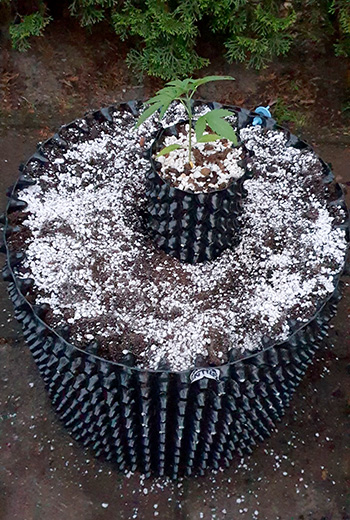 Bij mij duurde dit proces van 9 april tot 12 april. Op 12 april heb ik vijf ontkiemde zaadjes in 1 liter Air-Pots gedaan. De twee overige Sensi Auto Skunks deed ik in kleine 0,75-literpotjes. Na een paar dagen achter het raam, kwamen de zaailingen rond 14 april boven de grond. Daarna ben ik voorzichtig begonnen met het geven van kraanwater en Canna Rhizotonic wortelstimulator (ongeveer 1 milliliter per liter water).