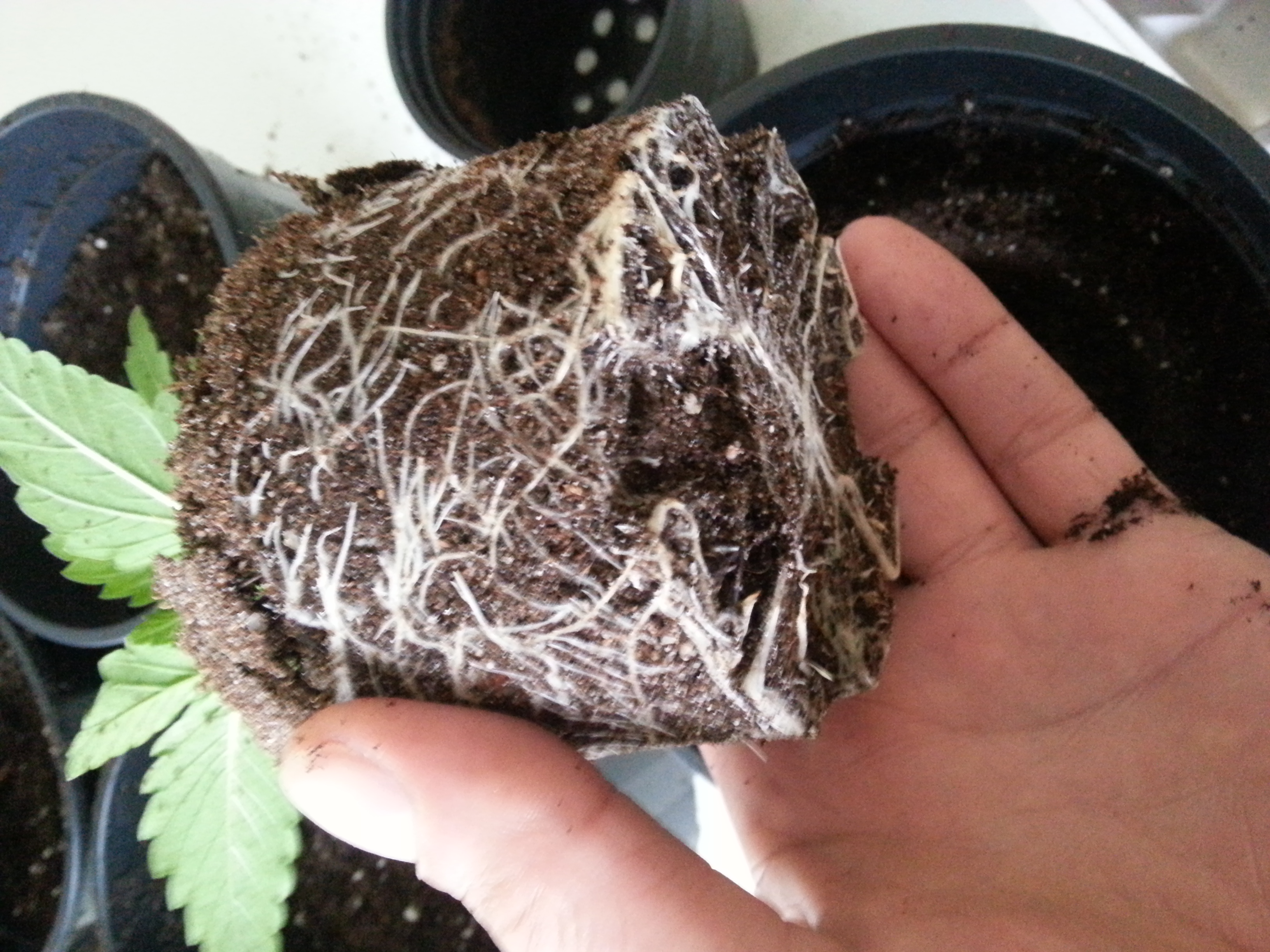 Al twee dagen na het overpotten kon ik de eerste wortelpuntjes aan de onderkant van de nieuwe potten uit zien komen. Ook boven de grond merk je een versnelde groei, de planten zijn nu al een stuk groter dan voor het overpotten.