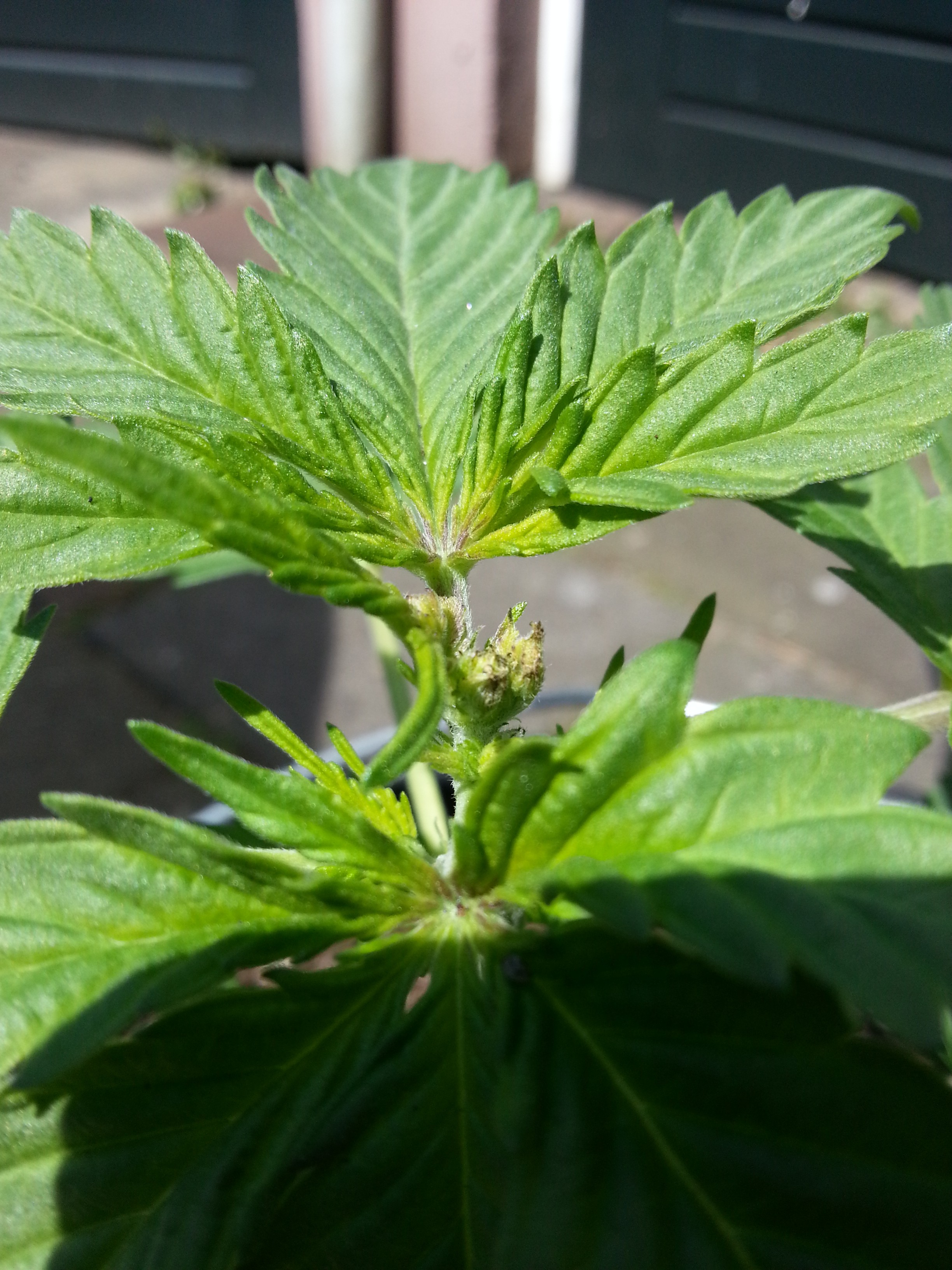 Bij de autoflowers heb ik deze week ook de eerste bloeiverschijnselen gespot. Wat gaat dat ongelooflijk snel zeg! Bij de nodes bovenin de plant kun je het zien: de eerste kleine haartjes. Ik wist al dat het vrouwelijke planten waren, want al mijn zaden zijn tenslotte gefeminiseerd, maar het is toch een mooi moment.